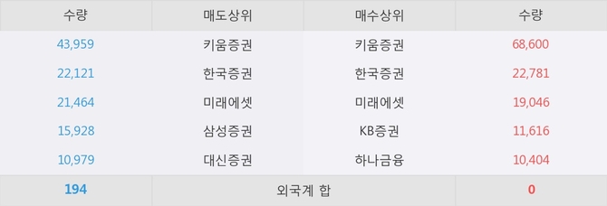 거래원 동향은 미래에셋, 하나금융 등이 매수 상위 목록에 나타나고 있다.