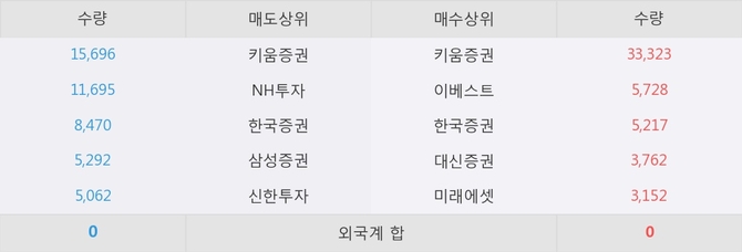아직까지 외국계 증권사 창구를 통한 매매는 발생하지 않고 있다. 그리고 이 시간 이베스트가 매수창구상위에 올라있는 종목은 이 종목 이외에도 오뚜기, 피피아이 등이 있다.