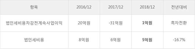 인성정보의 지난해 법인세 납부액은 5억원으로 2017년 6억원보다 -1억원(-16.7%) 감소했고, 법인세 유효세율(법인세비용/법인세차감전순이익)은 500.0%를 기록했다. 이는 회계 수치상으로만 봤을 때 순이익의 100% 이상을 세금으로 납부한 셈이다.