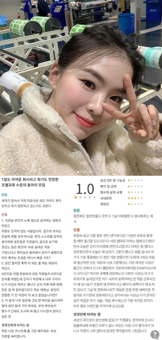 다른 누리꾼은 이 회사에 대해 아부 떨면 다 용서해주는 회사"라고 말하며 직원들은 대표의 기분을 살피는 것은 기본이고, 대표는 유튜브 촬영할 때만 출근을 하고 밤낮 없이 연락을 취하기도 한다고 말했다.