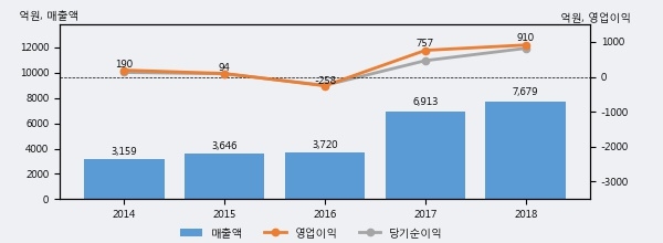 최근 3년간의 실적을 살펴보면 안정적 성장세를 보이고 있다. 최근 3년간 매출로 볼 때 매년 꾸준히 증가하고 있다. 다만 최근에 그 증가폭이 다소 감소하고 있다.