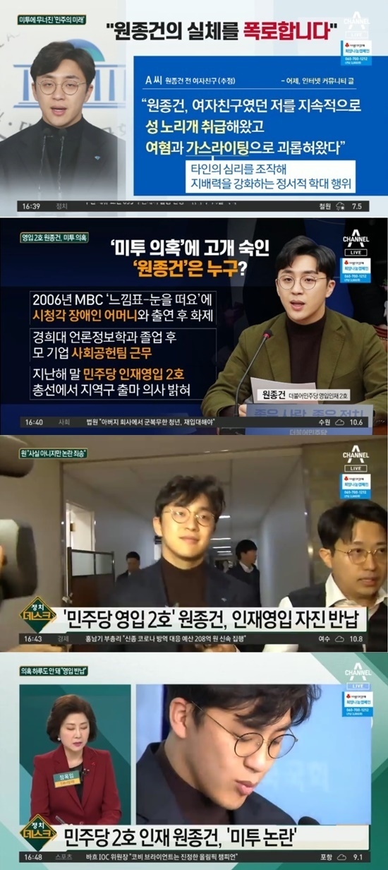 미투 폭로로 세간의 비난을 받게 된 원종건 씨는 민주당 영입인재 자격을 자진반납하고 불출마를 선언한 상황이다.