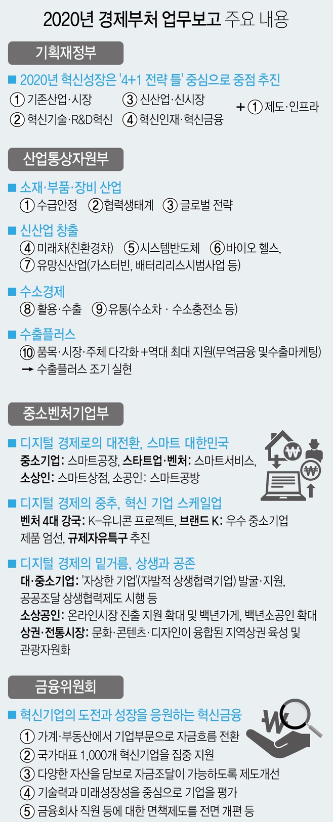 이날 청와대에서 진행된 기획재정부, 산업통상자원부, 중소벤처기업부, 금융위원회 등 4개 경제관련 부처의 업무보고를 받는 자리에서다.