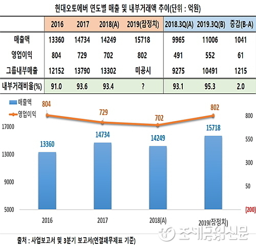 특히 회사 총매출의 95.3%를 현대자동차그룹 계열사들이 분담함으로써 ‘짬짜미’ 정도가 너무 심한 것 아니냐는 평가까지 나온다.