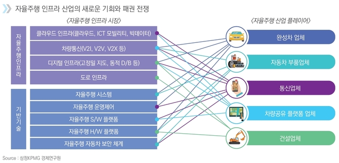 위승훈 삼정KPMG 자동차 산업 담당 리더(부대표)는 “향후에는 OEM과 통신사, 통신사와 IT기업, 플랫폼 기업과 OEM 등 다양한 협력 관계가 구축돼 산업을 초월한 기업 연대가 탄생할 것”이라며, “자율주행 산업의 각축전에서 승리하기 위해서는 산업의 경계를 뛰어넘어 다양한 분야의 기업들과 전략적 협업 체계를 만들어 나가는 것이 중요하다”고 강조했다.