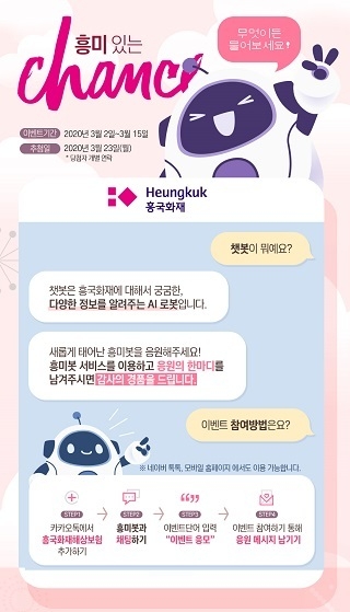 흥국화재는 이번 서비스 오픈을 기념해 이달 15일까지 ‘무엇이든 물어보세요! 흥미 있는 CHANCE’이벤트를 실시한다.