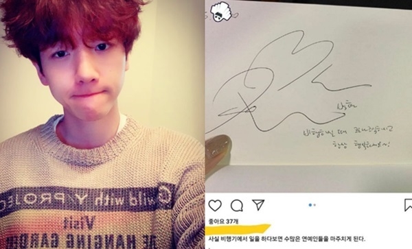 이 승무원은 백현에게 받은 사인을 직접 공개, "비행하실 때 코로나 조심하시고 행복하세요", "노래 들어주셔서 감사하고 건강 조심하세요" 등의 멘트가 공개됐다.