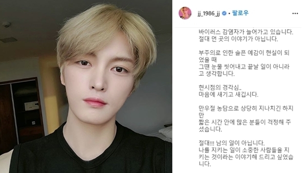 김재중은 1일 자신의 인스타그램을 통해 코로나19 바이러스에 감염됐다고 전해 팬들에게 큰 충격을 안겼다.