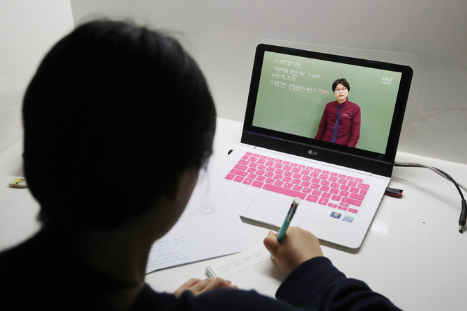 학생들은 집에서 데스크톱이나 노트북, 스마트패드, 스마트폰 등으로 수업을 듣는다.
