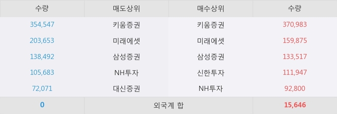 거래원 동향은 미래에셋, 삼성증권, NH투자 등이 매수 상위 목록에 나타나고 있다.