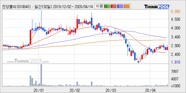 진양폴리는 2019년 매출액 319억원과 영업이익 32억원을 기록했다. 전년대비 매출은 6.0%, 영업이익은 191.9% 각각 상승했다. 이 회사의 매출액 증감률과 영업이익 증감률은 각각 코스피 하위 1%, 하위 1%에 해당된다.