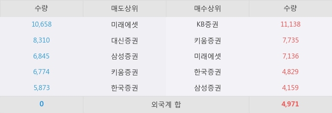거래원 동향은 미래에셋, 삼성증권 등이 매수 상위 목록에 나타나고 있다.