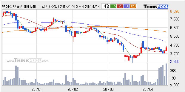연이정보통신의 2019년 매출액은 전년대비 10.0% 늘어난 3161억원이고, 영업이익 또한 전년대비 98.6% 늘어난 116억원을 기록했다. 이 회사의 매출액 증감률과 영업이익 증감률은 각각 코스닥 상위 39%, 상위 19%에 해당된다.