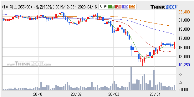 테이팩스의 2019년 매출액은 1126억으로 전년대비 3.8% 상승했고, 영업이익 또한 83억으로 전년대비 10.0% 상승했다. 이 회사의 매출액 증감률과 영업이익 증감률은 각각 코스피 상위 42%, 상위 45%에 해당된다.