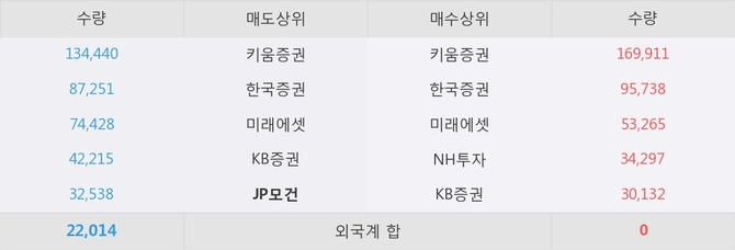 거래원 동향은 미래에셋, NH투자 등이 매수 상위 목록에 나타나고 있다. 한편, 매도 창구 상위에는 JP모건이 눈에 띄고 있다.