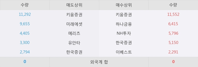 거래원 동향은 하나금융, NH투자 등이 매수 상위 목록에 나타나고 있다.