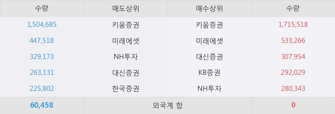 거래원 동향은 미래에셋, NH투자 등이 매수 상위 목록에 나타나고 있다.