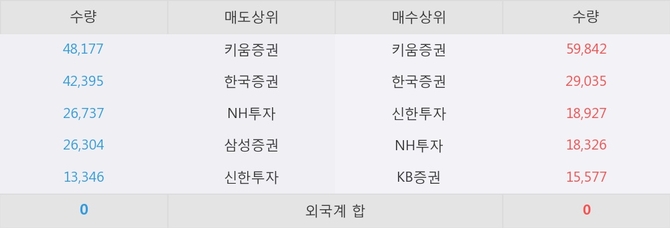 이 시각 주요 거래원은 NH투자, 키움증권, 한국증권 등이 매수 상위 창구에 자리하고 있다.