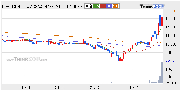 대웅의 2019년 매출액은 1조 3657억으로 전년대비 10.9% 상승했고, 영업이익 또한 1075억으로 전년대비 25.4% 상승했다. 이 회사의 매출액 증감률과 영업이익 증감률은 각각 코스피 상위 24%, 상위 36%에 해당된다.