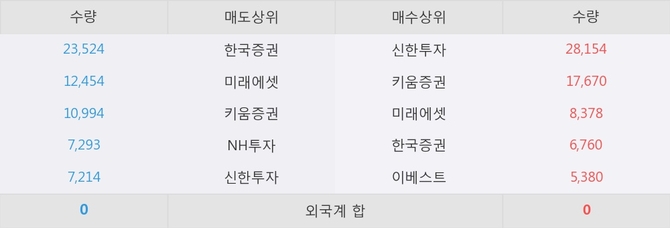 이 시각 주요 거래원은 미래에셋, 신한투자, 키움증권 등이 매수 상위 창구에 자리하고 있다.