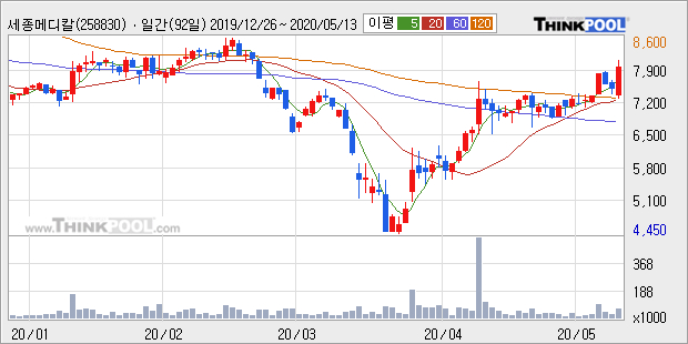 세종메디칼의 2019년 매출액은 162억으로 전년대비 9.4% 상승했고, 영업이익 또한 38억으로 전년대비 17.5% 상승했다. 이 회사의 매출액 증감률과 영업이익 증감률은 각각 코스닥 상위 41%, 상위 40%에 해당된다.