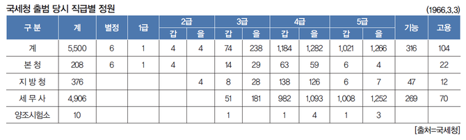 어찌 보면 국세청 개청의 주요핵심 과업이 세무조사 업무강화라고 할 만큼 세수확대를 최우선으로 설정, 세수제일주의를 표방해온 결과 때문에 인력 증원이 절대였다고 하겠다. 당시만 해도 세무조사 인력 충원을 위해 본청에 176명, 지방세무관서에 824명 등 1000여 명을 증원한 것만 보아도 쉽게 세무조사의 중요도가 묻어난다.