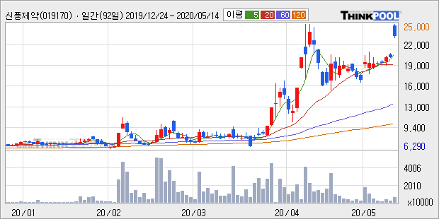 신풍제약은 2019년 매출액 1897억원과 영업이익 20억원을 기록했다. 전년대비 매출은 1.2% 상승했고, 영업이익은 -71.6% 하락했다. 이 회사의 매출액 증감률과 영업이익 증감률은 각각 코스피 하위 48%, 하위 15%에 해당된다.