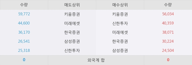 거래원 동향은 미래에셋, 삼성증권 등이 매수 상위 목록에 나타나고 있다.