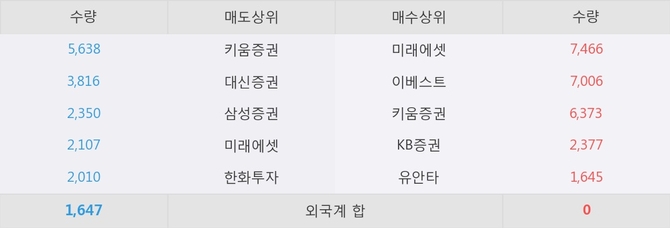 이 시각 주요 거래원은 미래에셋, 이베스트, 키움증권 등이 매수 상위 창구에 자리하고 있다.