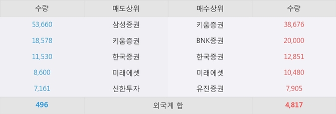 이 시각 주요 거래원은 미래에셋, 키움증권, BNK증권 등이 매수 상위 창구에 자리하고 있다.