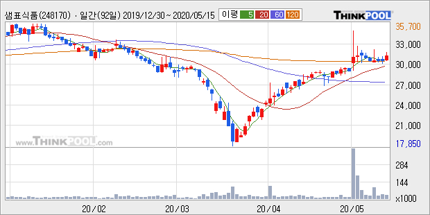 샘표식품의 2019년 매출액은 2808억으로 전년대비 1.9% 상승했고, 영업이익 또한 310억으로 전년대비 44.5% 상승했다. 이 회사의 매출액 증감률과 영업이익 증감률은 각각 코스피 상위 50%, 상위 29%에 해당된다.