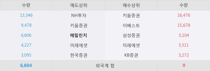 거래원 동향은 삼성증권, 미래에셋 등이 매수 상위 목록에 나타나고 있다. 한편, 매도 창구 상위에는 메릴린치가 눈에 띄고 있다.
