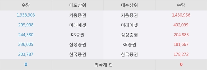 아직까지 외국계 증권사 창구를 통한 매매는 발생하지 않고 있다. 그리고 이 시간 미래에셋이 매수창구상위에 올라있는 종목은 이 종목 이외에도 아바코, TIGER 유로스탁스배당30 등이 있다.