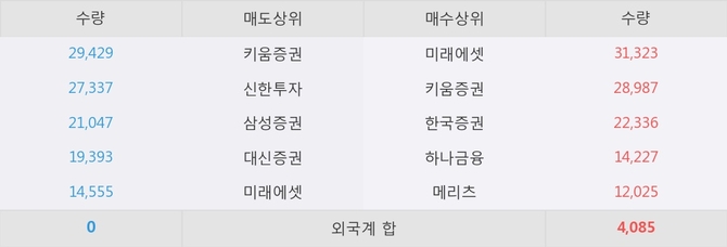 거래원 동향은 미래에셋, 하나금융, 메리츠 등이 매수 상위 목록에 나타나고 있다.