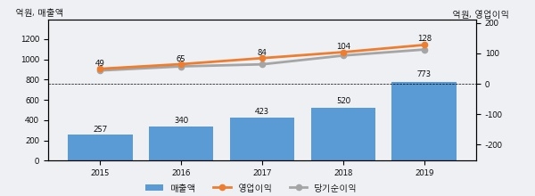최근 3년간의 실적을 살펴보면 안정적 성장세를 보이고 있다. 최근 3년간 매출로 볼 때 매년 꾸준히 증가하고 있고 그 증가폭도 확대되고 있다.