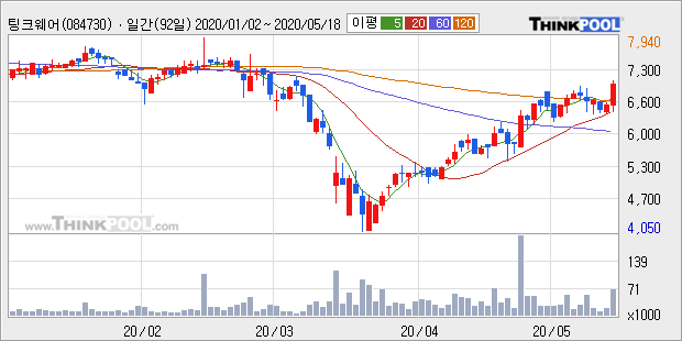 팅크웨어는 2019년 매출액 1822억원과 영업이익 78억원을 기록했다. 전년대비 매출은 -6.3% 하락했고, 영업이익은 1.4% 상승했다. 이 회사의 매출액 증감률과 영업이익 증감률은 각각 코스닥 하위 28%, 상위 50%에 해당된다.