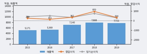 한양이엔지의 2019년 매출액은 전년대비 -2.1% 줄어든 7721억원이고, 영업이익 역시 전년대비 -65.6% 줄어든 334억원을 기록했다. 이 회사의 매출액 증감률과 영업이익 증감률은 각각 코스닥 하위 35%, 하위 24%에 해당된다.