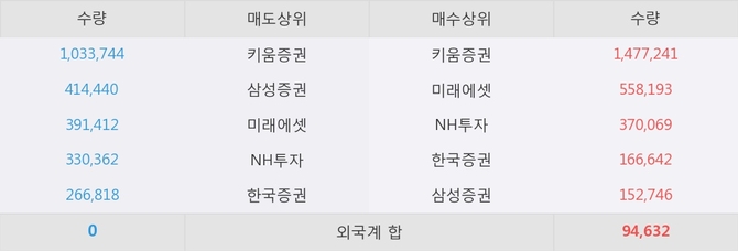 거래원 동향은 미래에셋, NH투자, 삼성증권 등이 매수 상위 목록에 나타나고 있다.