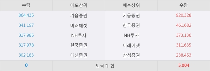 거래원 동향은 NH투자, 미래에셋, 삼성증권 등이 매수 상위 목록에 나타나고 있다.