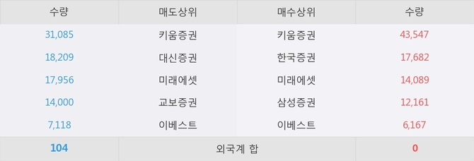 거래원 동향은 미래에셋, 삼성증권 등이 매수 상위 목록에 나타나고 있다.