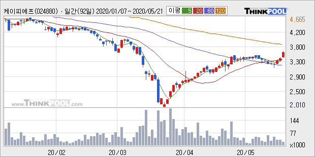 케이피에프의 2019년 매출액은 전년대비 0.3% 늘어난 3763억원이고, 영업이익 또한 전년대비 2.8% 늘어난 163억원을 기록했다. 이 회사의 매출액 증감률과 영업이익 증감률은 각각 코스닥 하위 40%, 상위 49%에 해당된다.