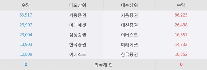 이 시각 주요 거래원은 미래에셋, 키움증권, 대신증권 등이 매수 상위 창구에 자리하고 있다.