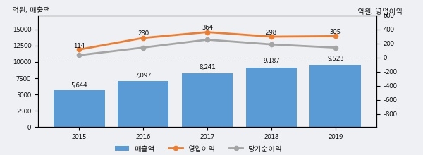 최근 3년간의 실적을 살펴보면 안정적 성장세를 보이고 있다. 최근 3년간 매출로 볼 때 매년 꾸준히 증가하고 있다. 다만 최근에 그 증가폭이 다소 감소하고 있다.