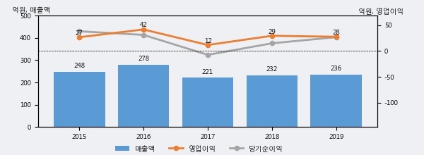 플랜티넷의 2019년 매출액은 전년대비 1.4% 늘어난 236억원이고, 영업이익은 전년대비 -6.5% 줄어든 28억원을 기록했다. 이 회사의 매출액 증감률과 영업이익 증감률은 각각 코스닥 하위 43%, 하위 49%에 해당된다.