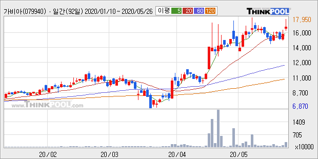 가비아는 2019년 매출액 1483억원과 영업이익 237억원을 기록했다. 전년대비 매출은 15.2%, 영업이익은 30.5% 각각 상승했다. 이 회사의 매출액 증감률과 영업이익 증감률은 각각 코스닥 상위 31%, 상위 35%에 해당된다.