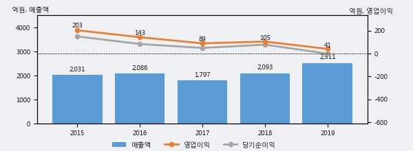 최근 실적을 살펴보면 2019년 매출액이 최근 5년 중 가장 높은 실적을 기록했음을 알 수 있다. 이전 최고 실적이었던 2018년 보다도 20.0%(418억 4천만원) 늘어난 것으로 나타났다.