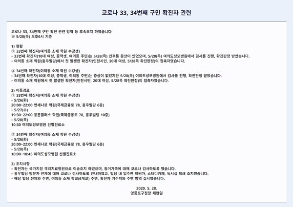 [영등포 구청 전문 / 코로나 33, 34번째 확진자 관련]