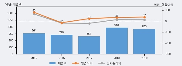 엘티씨의 2019년 매출액은 전년대비 -4.9% 줄어든 920억원이고, 영업이익은 전년대비 11.7% 늘어난 37억원을 기록했다. 이 회사의 매출액 증감률과 영업이익 증감률은 각각 코스닥 하위 30%, 상위 43%에 해당된다.