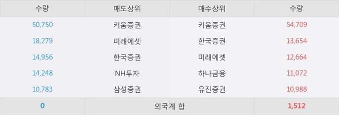 거래원 동향은 미래에셋, 하나금융 등이 매수 상위 목록에 나타나고 있다.