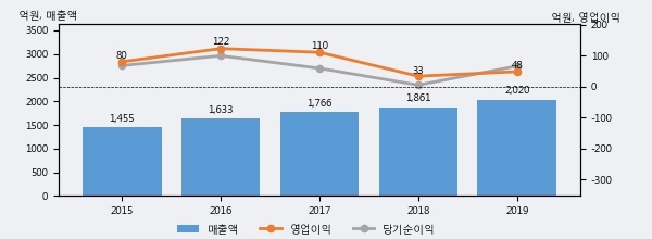 최근 3년간의 실적을 살펴보면 안정적 성장세를 보이고 있다. 최근 3년간 매출로 볼 때 매년 꾸준히 증가하고 있고 그 증가폭도 확대되고 있다.
